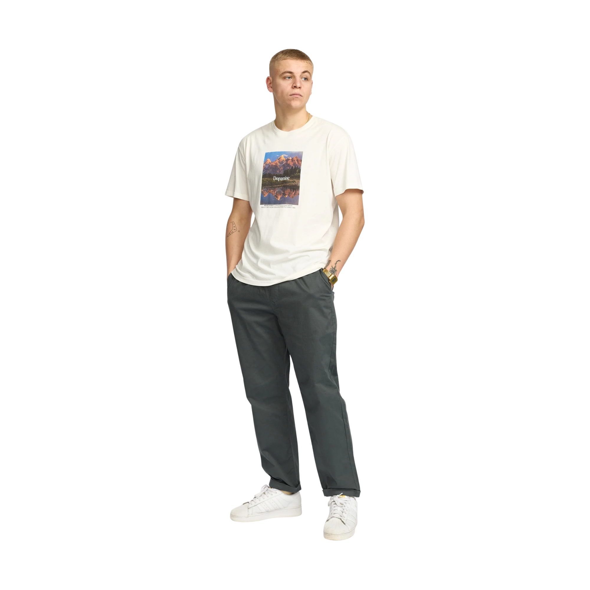 - Dettagli di Stile: tasca posteriore arrotondata con etichetta distintiva "Revolution".