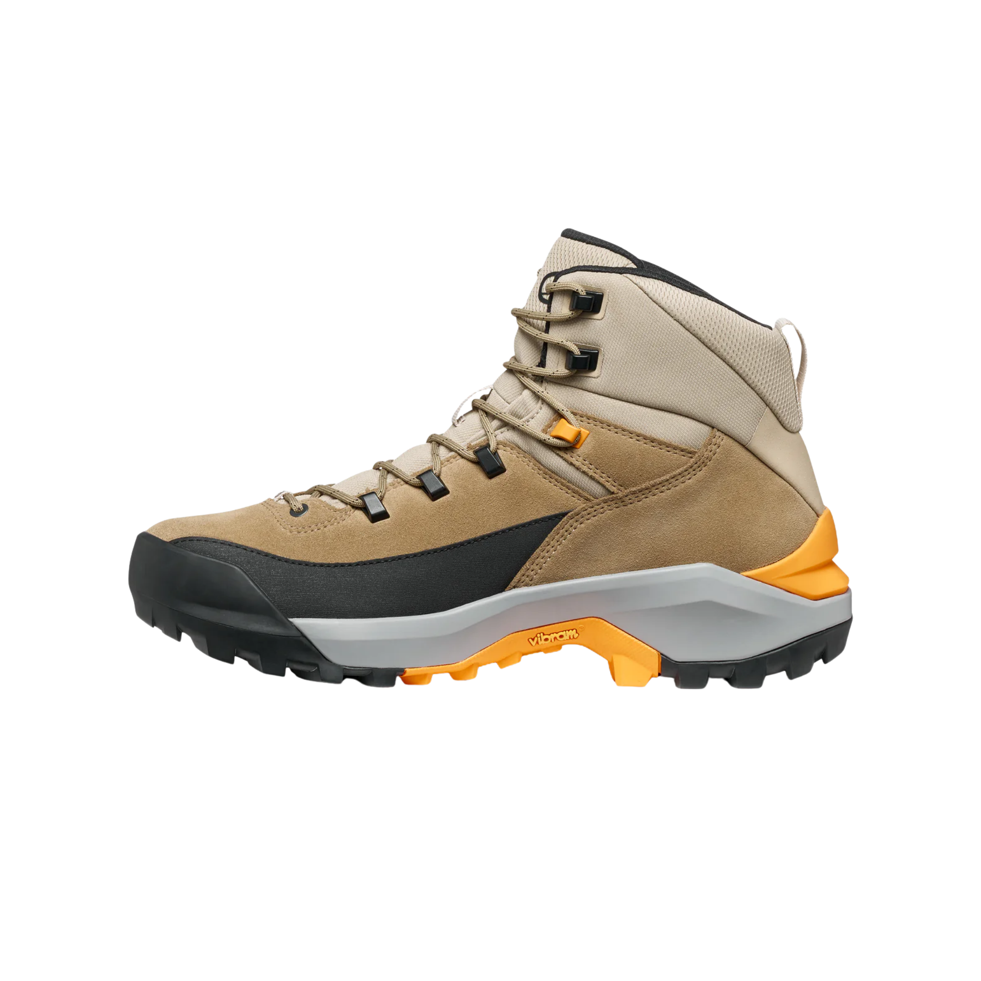 La tomaia combina pelle scamosciata resistente e inserti tecnici, offrendo supporto strutturato alla caviglia e protezione contro urti e abrasioni. La costruzione avvolgente garantisce una calzata sicura anche sui sentieri più irregolari.